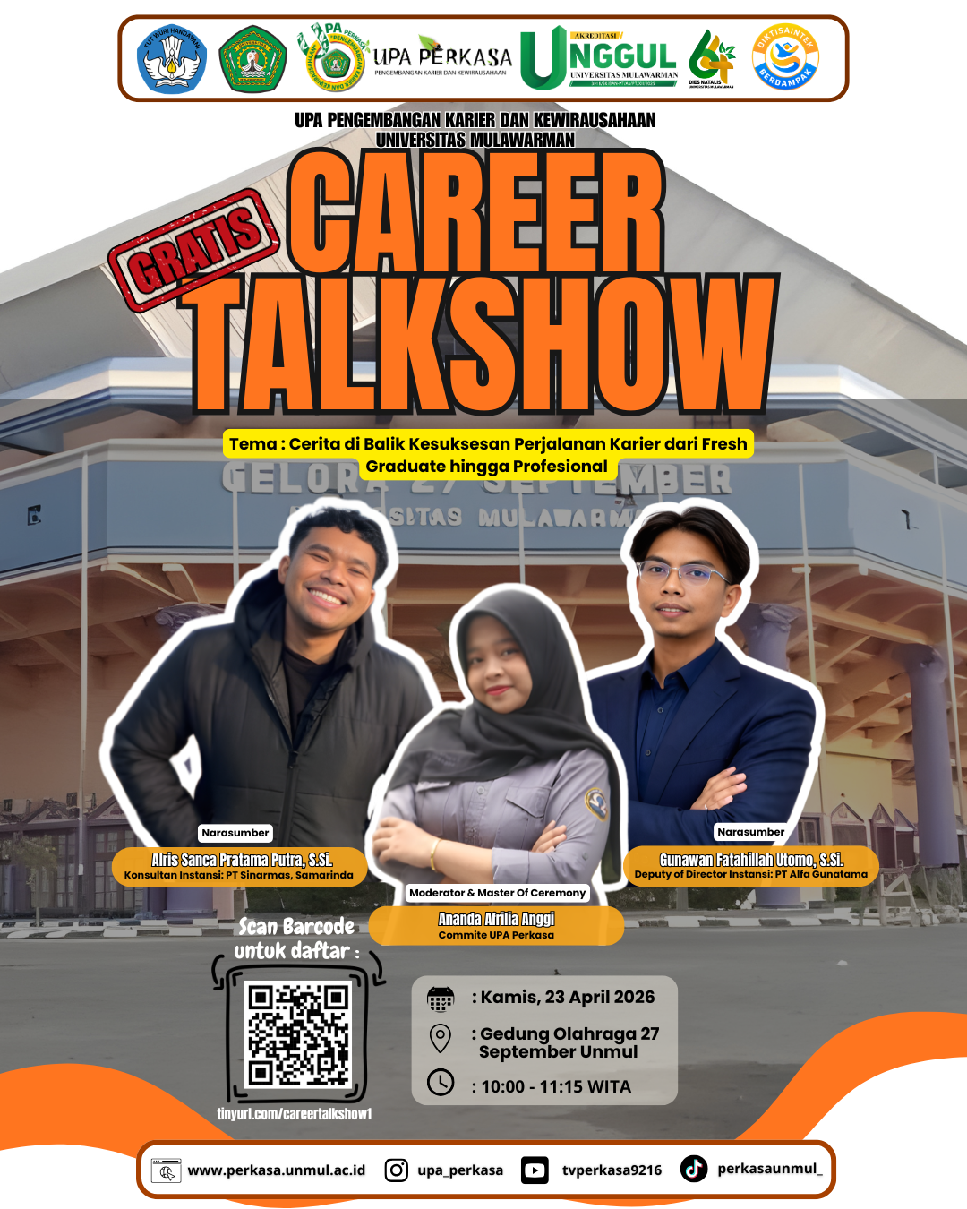 UPA Perkasa mempersembahkan CAREER TALKSHOW sebagai bagian dari kemeriahan Job Fair UNMUL Batch I 2026.