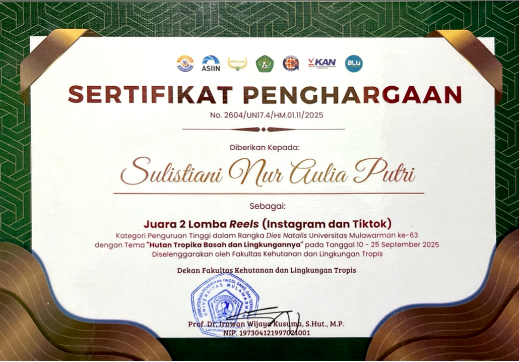 Prestasi pada Dies Natalis UNMUL ke-63 sebagai "Juara 2 Lomba Reels (Instagram & Tiktok)"