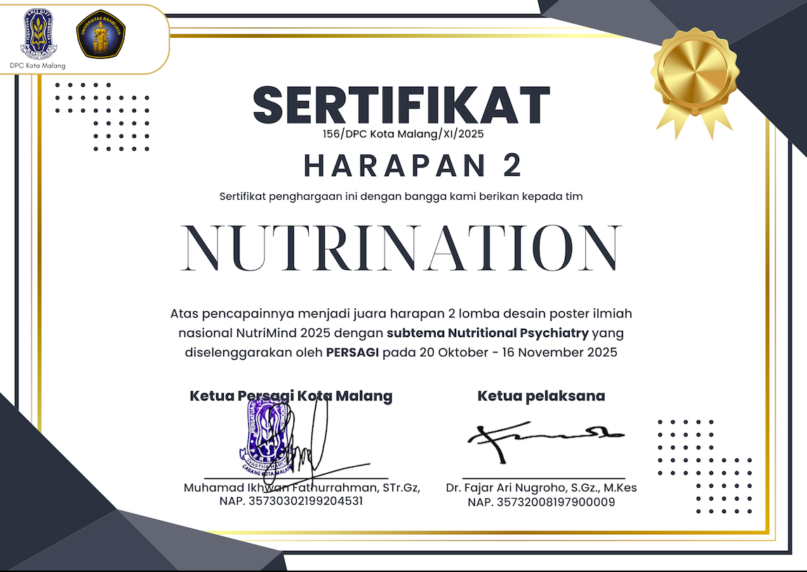 Prestasi pada Lomba Desain Poster Ilmiah Nasional Nutrimind 2025 sebagai "Juara Harapan 2"