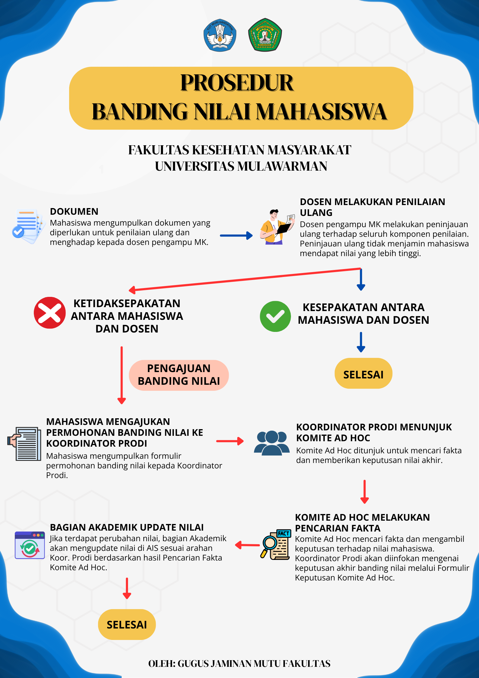 Pengajuan banding nilai dapat dilakukan dengan mengikuti alur dan prosedur resmi yang telah ditetapkan oleh Fakultas Kesehatan Masyarakat UNMUL sebagai berikut: